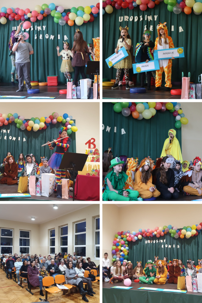 20 lutego klasy I-IV, dzieci z rudnickiego przedszkola oraz goście zaproszeni, w tym Pani Kurator Joanna Raźniewska, uczestniczyli w odlotowych „Urodzinach Słonia”- kolejnym przedstawieniu Szkolnego Koła Teatralnego „Za kulisami”.