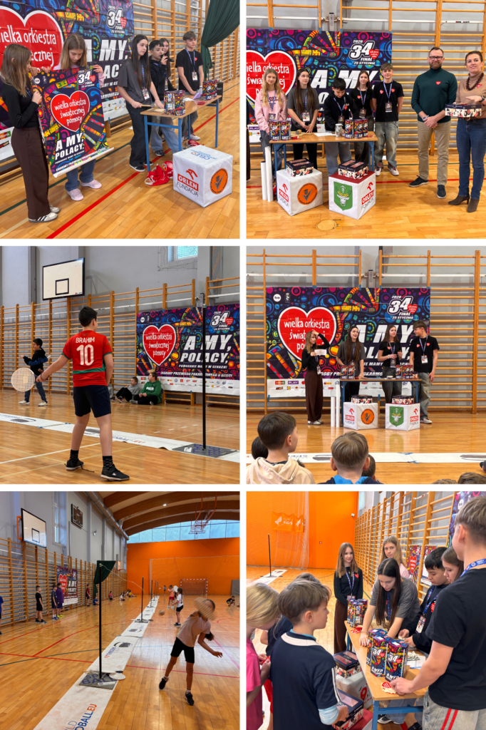 Cała społeczność szkolna aktywnie włączyła się w obchody 34. Finału Wielkiej Orkiestry Świątecznej Pomocy. Jedenastu szkolnych wolontariuszy, przy ścisłej współpracy z samorządem uczniowskim oraz nauczycielami, przygotowało liczne atrakcje i inicjatywy, które umożliwiły wsparcie tej ogólnopolskiej akcji charytatywnej.